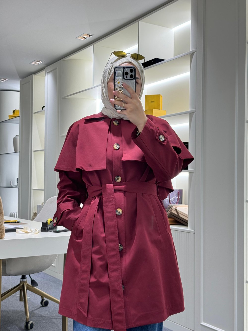 •Seyyar Pelerinli Trençkot• Bordo