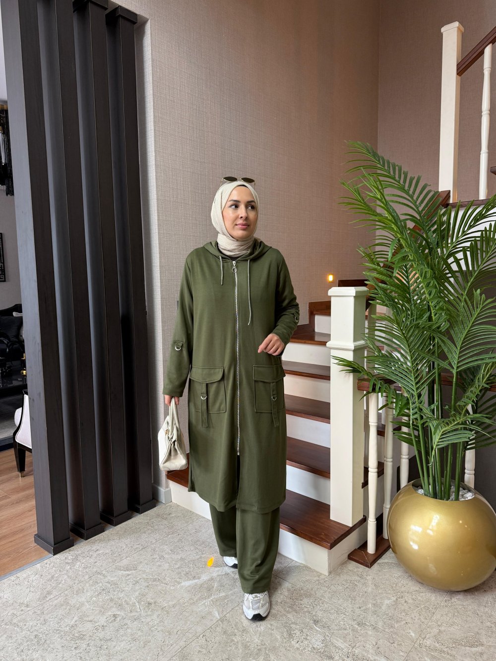 Kap boy 105 cm’dir. Önünde metal dişli fermuarı, yanlarda cepleri bulunmaktadır. Kapüşonludur.