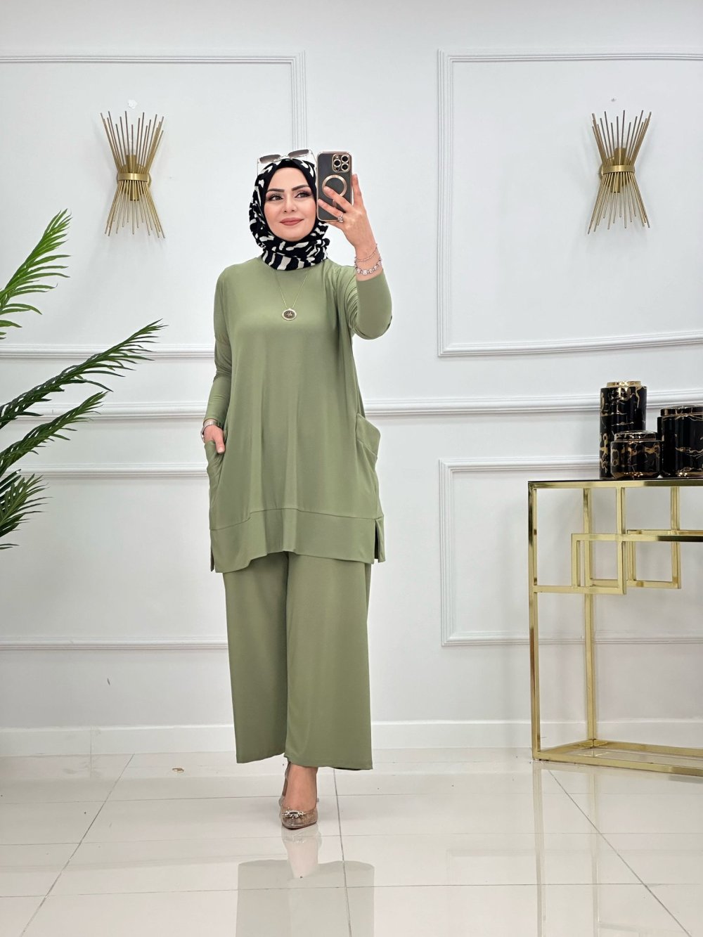 Çok sevilen kalıbı ve modeliyle sandy kumaş Almina  takım stoklarımızda...