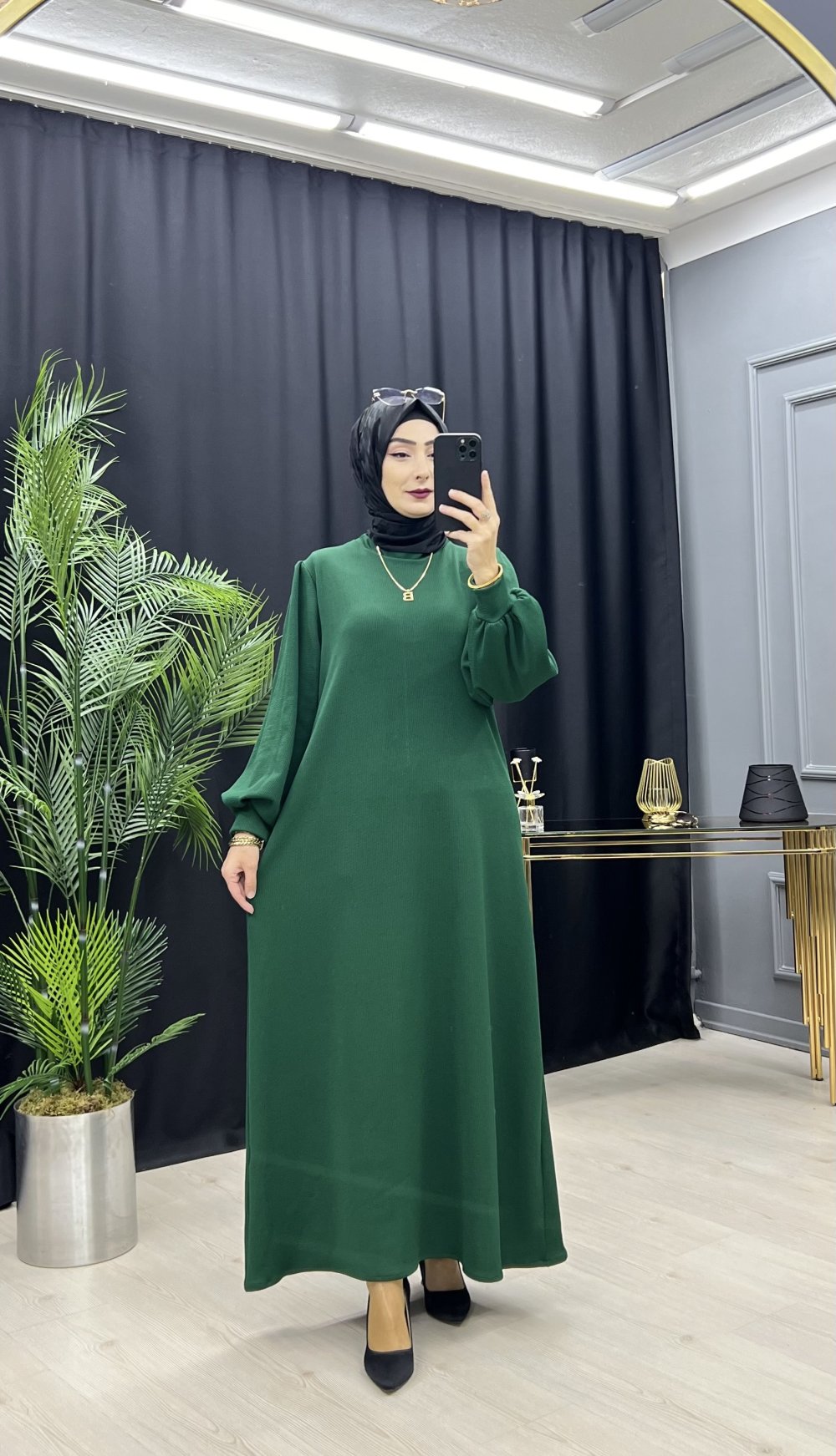 Yağ Yeşil Premium Sultan Elbise Tesettür Giyim