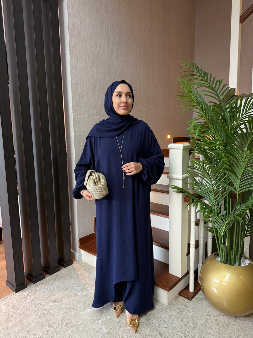 * Asimetrik Detay Şallı Üçlü Takım •