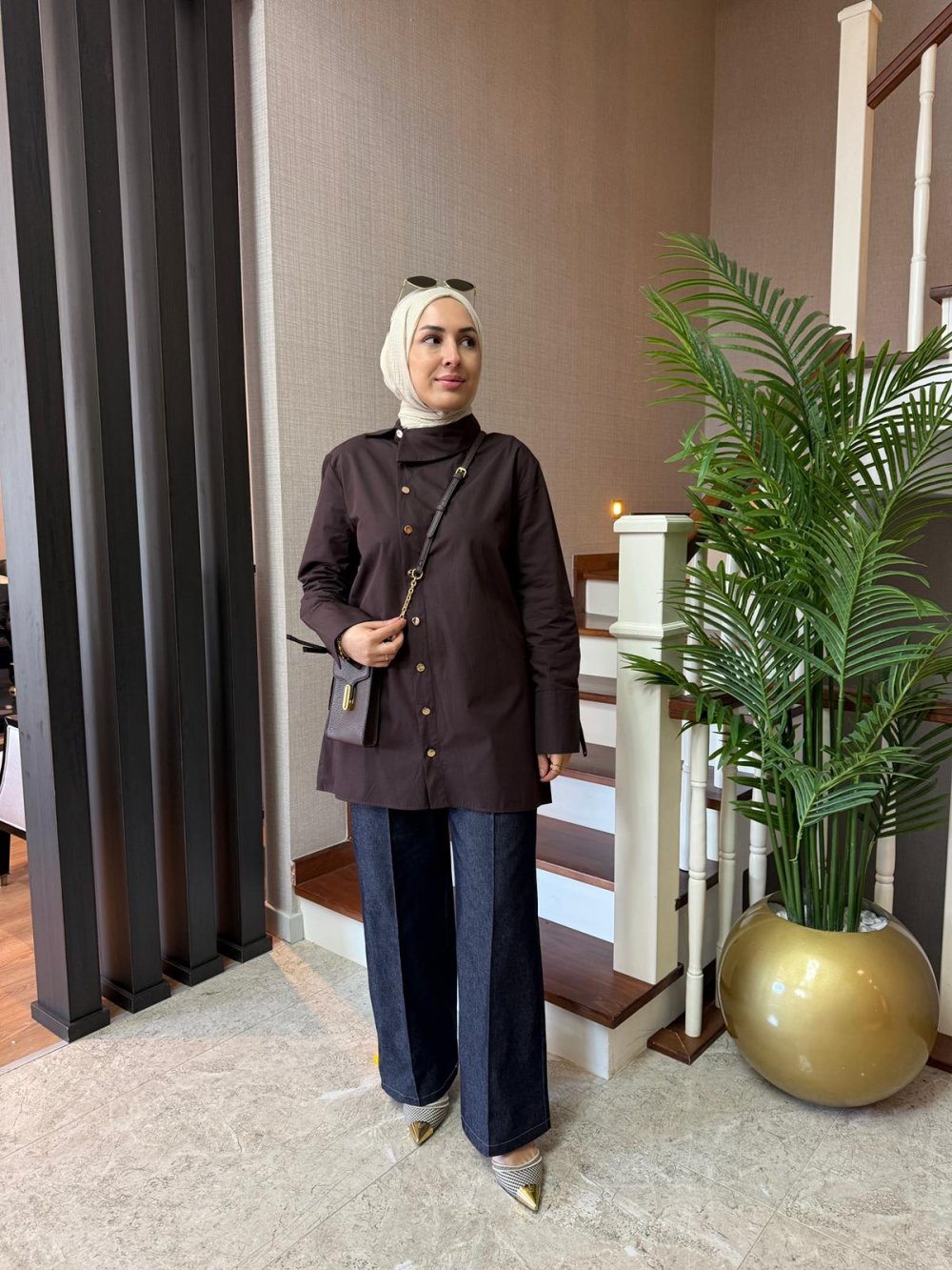 Asimetrik Yaka Gömlek Kahverengi