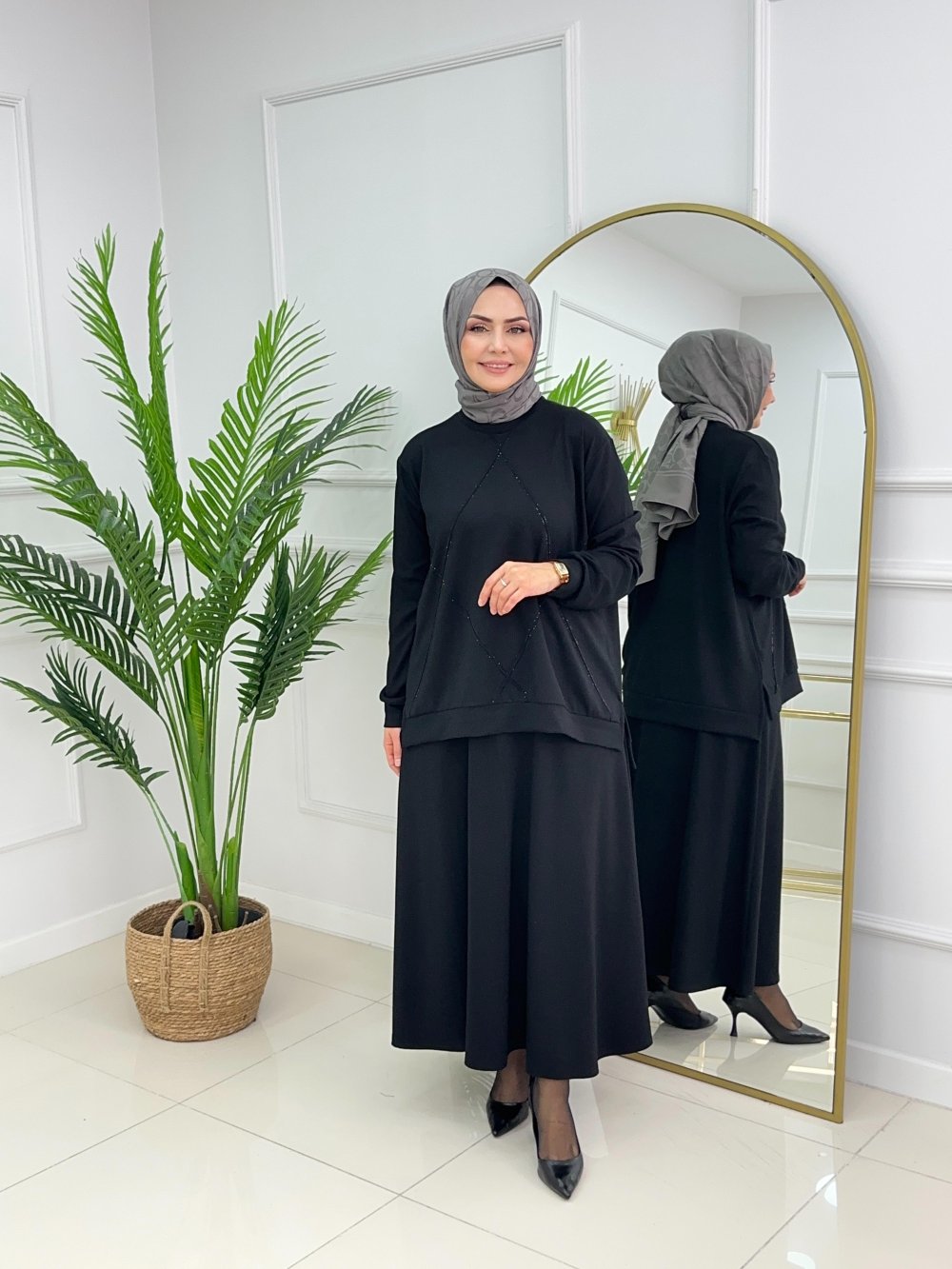 ASMİN ETEKLİ TAKIM - SİYAH