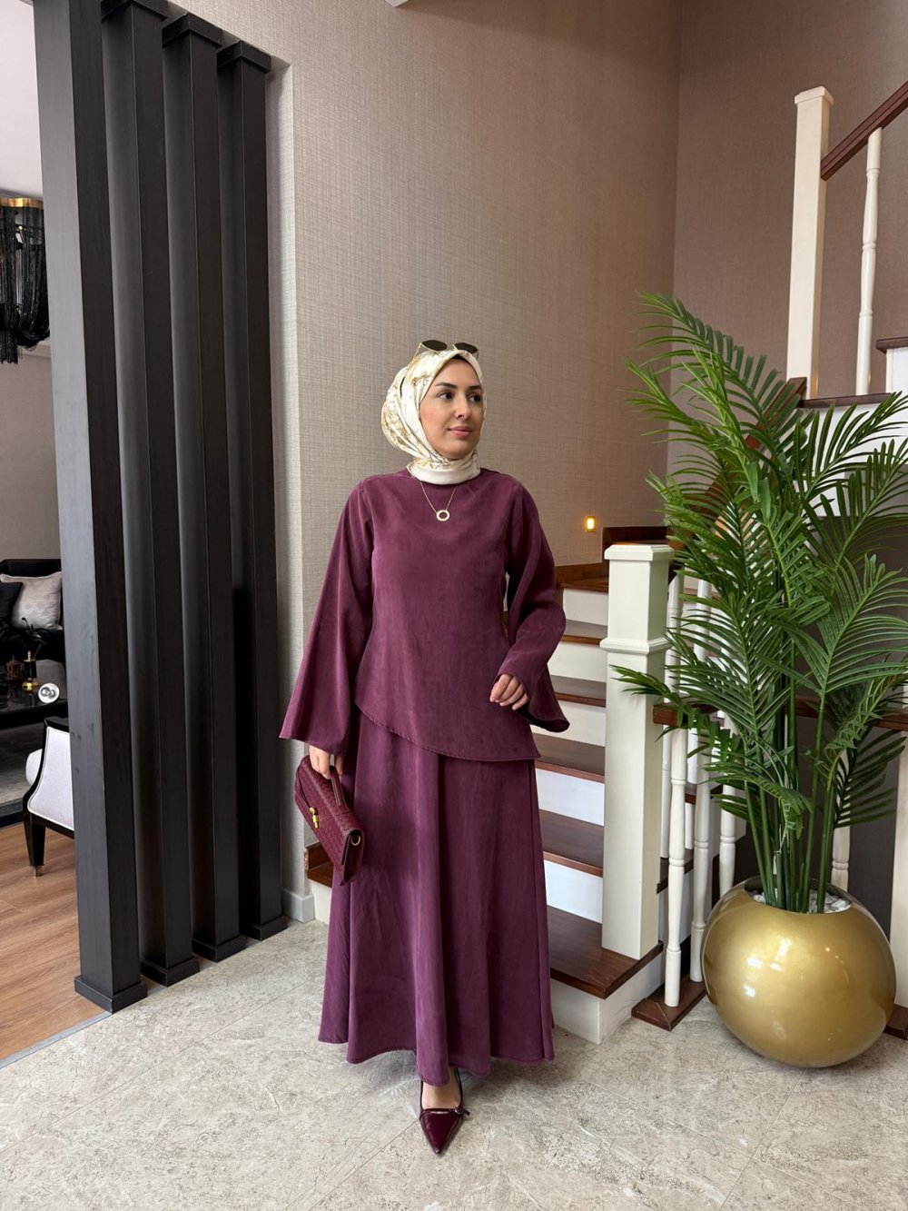 Etek boy 100 cm’dir. Yandan fermuarlı, önü kemerli ve arkadan lastiklidir.