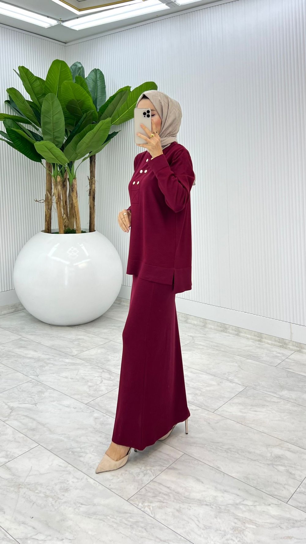Bordo Premium Asiye Triko Etek Takım