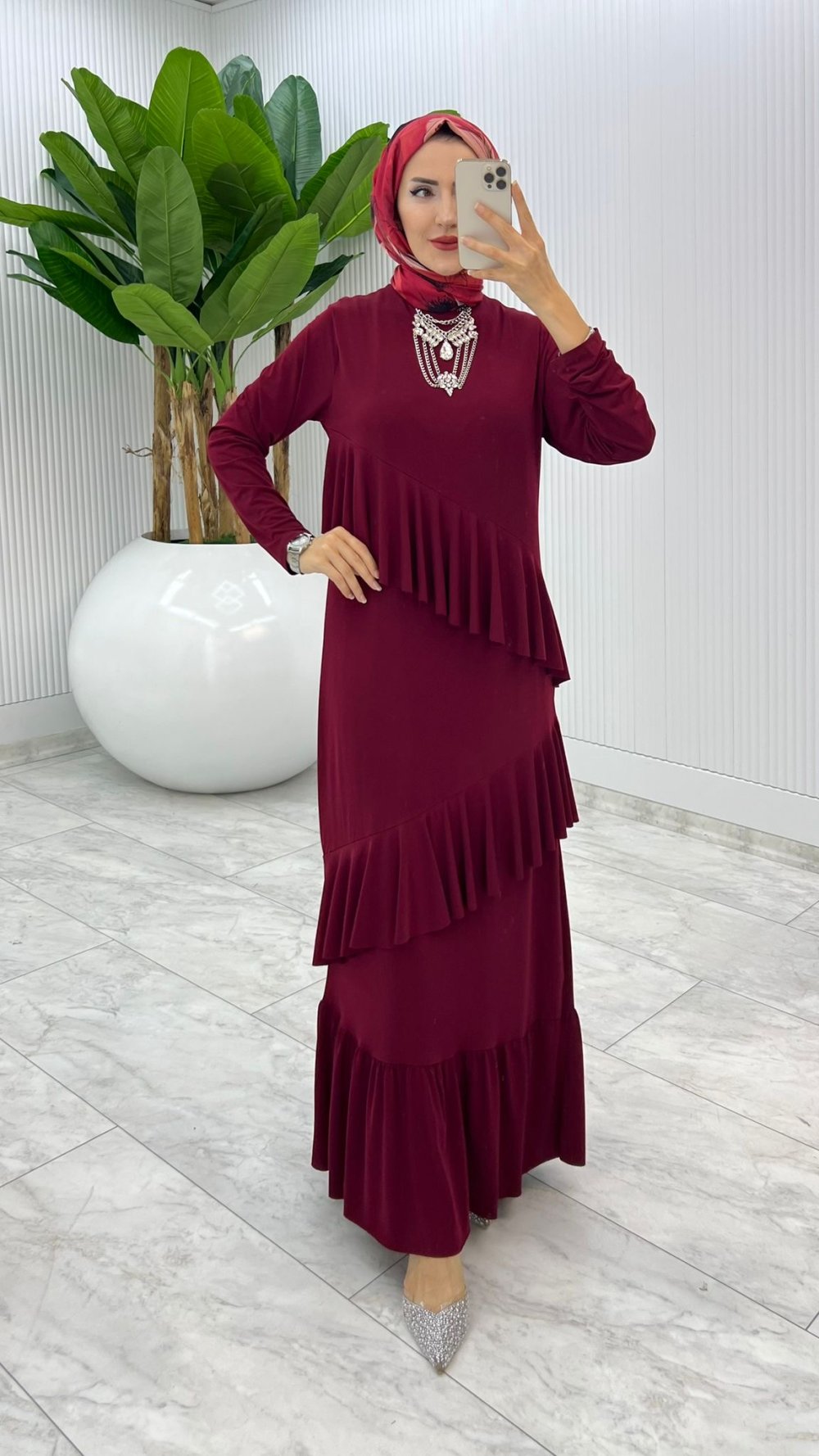 Bordo Premium Tijen Elbise Tesettür Giyim