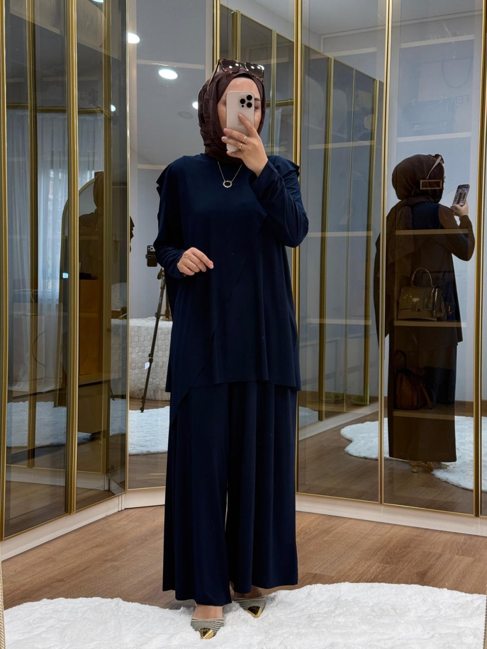 Çapraz Şal Detaylı Tilda Kumaş Takım Lacivert