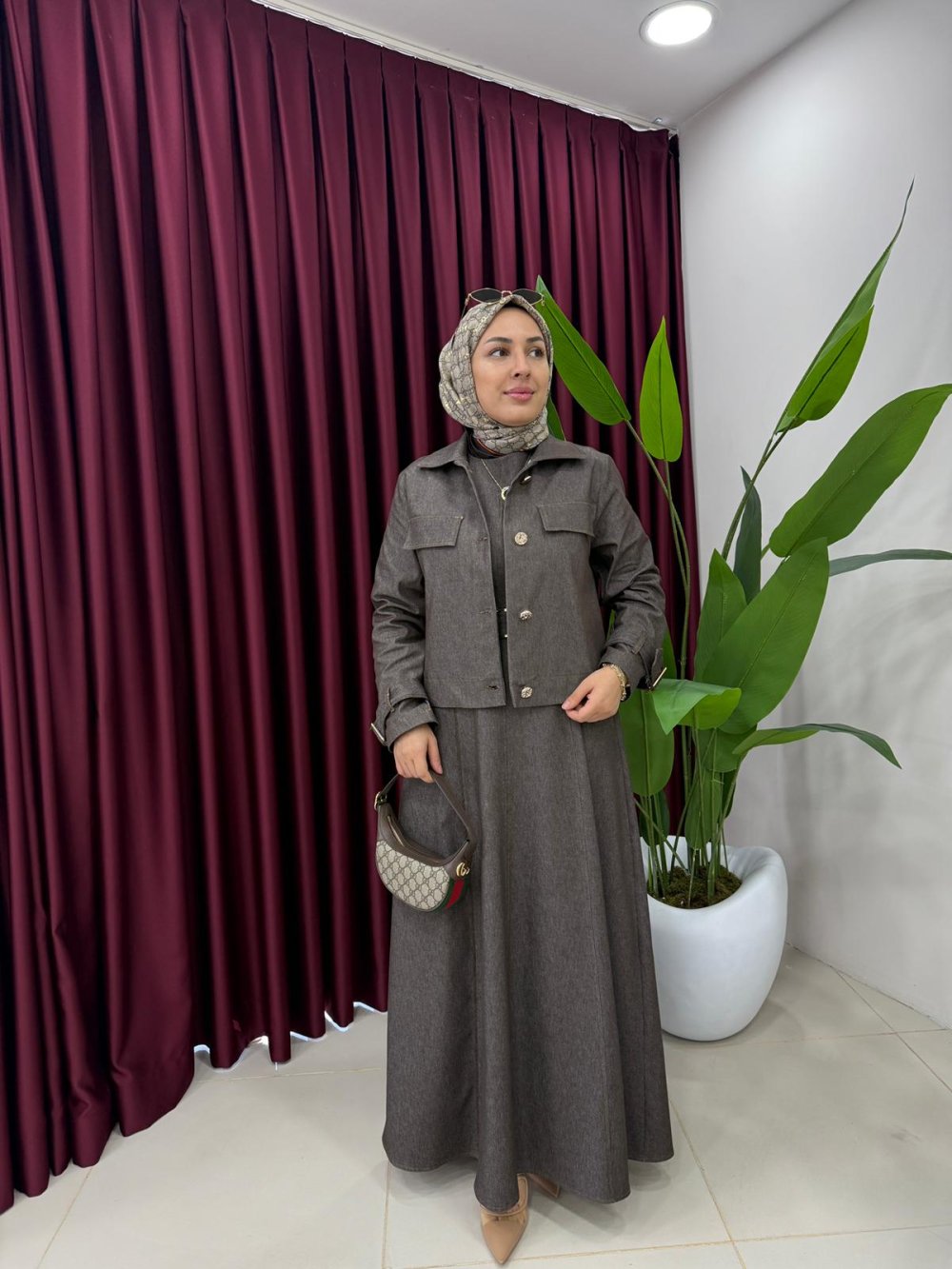 Elbise boy 142 cm’dir. Arkadan fermuarlıdır, seyyar kuşağı mevcuttur.