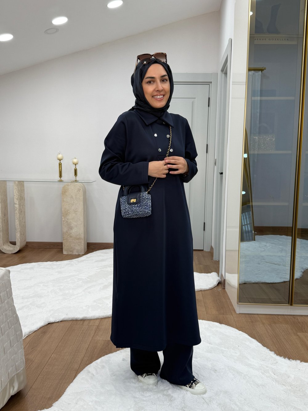 Çıtçıtlı Detaylı Maksi Boy Scuba Takım Lacivert