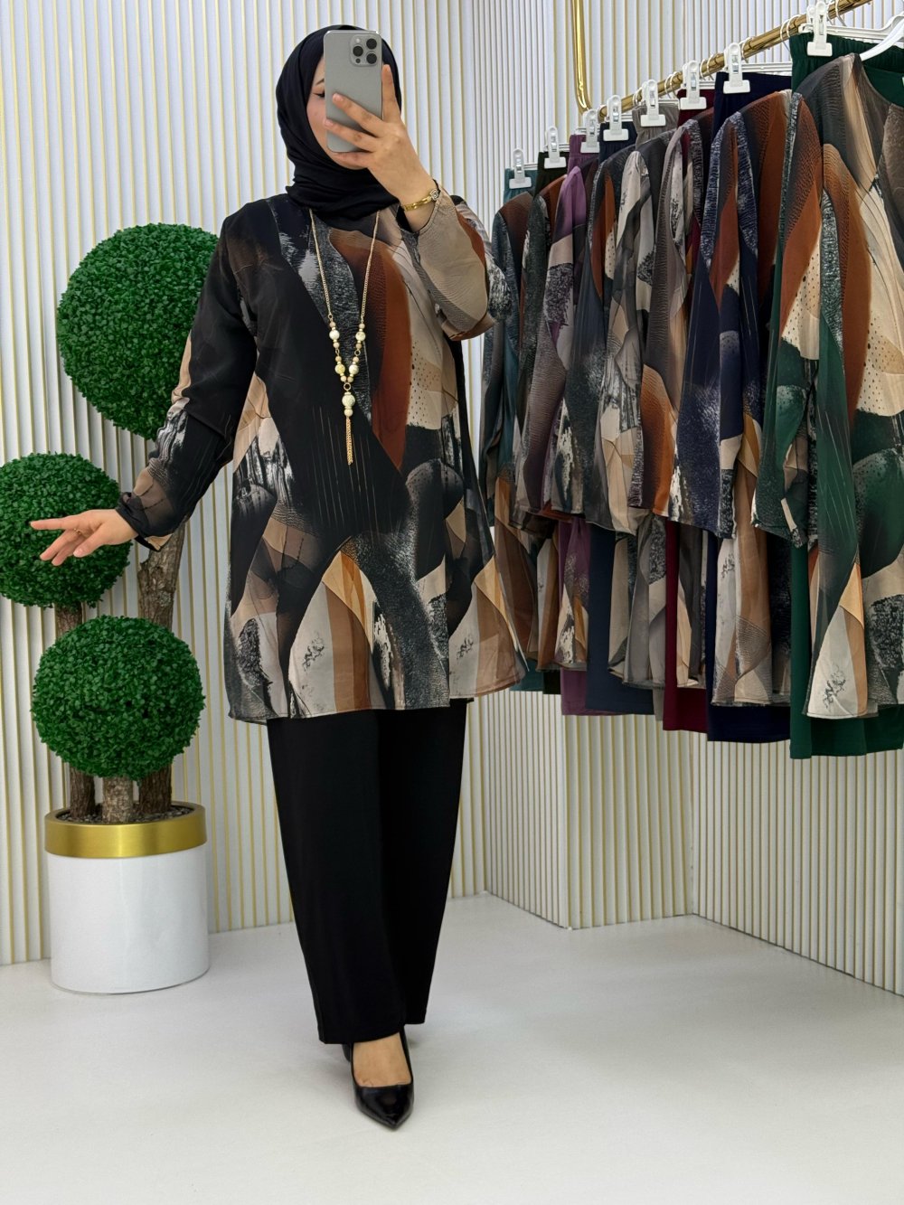 Tunik dijital baskılı şifon içi sandy kumaş