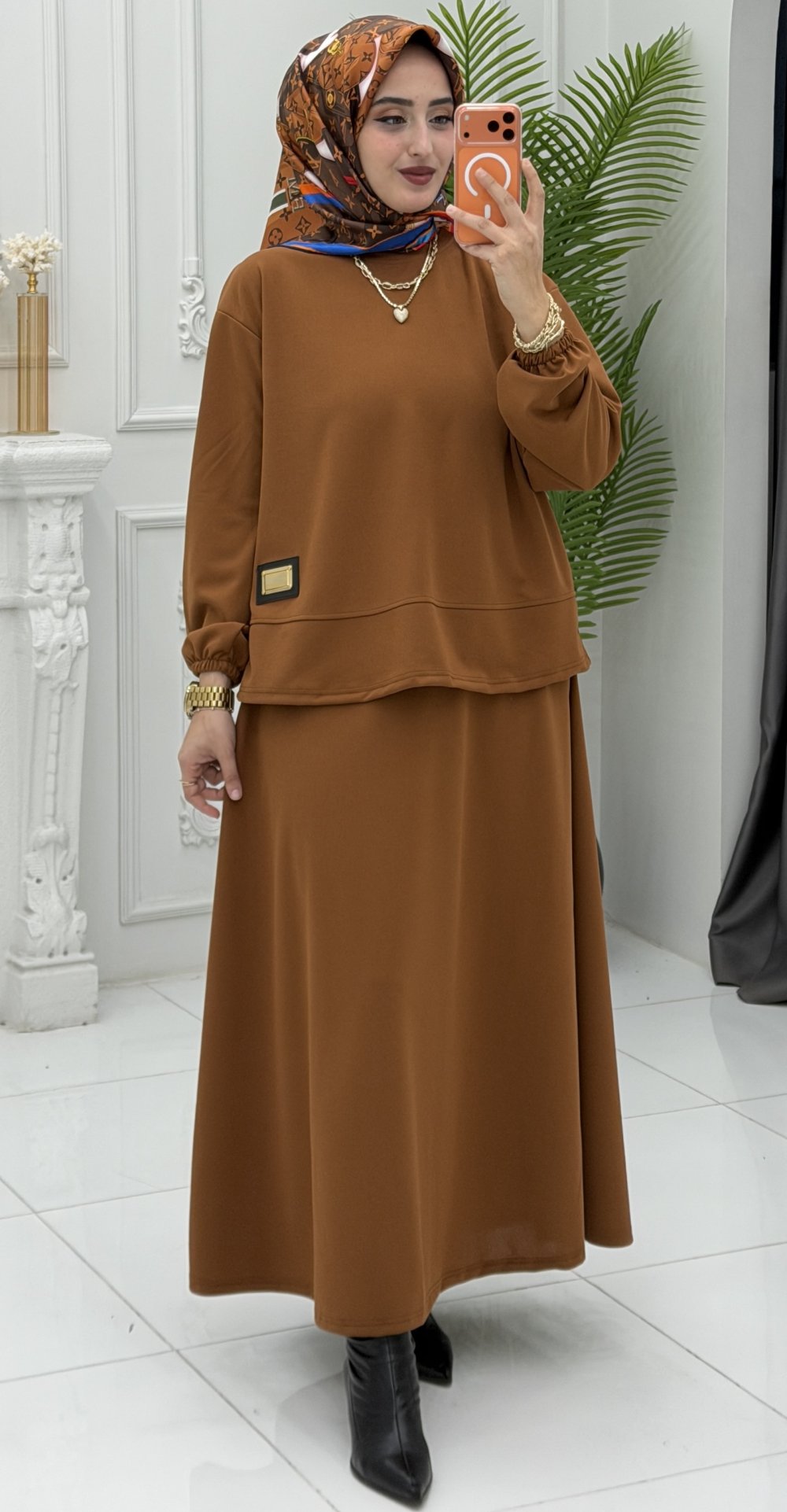 Rahatlık ve şıklığı bir araya getiren Dila  Etek Takım, sade ama zarif duruşuyla günlük kombinlerinizi güçlendiriyor. Yumuşak kumaşı ve esnek yapısı sayesinde gün boyu konfor sunarken, modern kesimiyle stil sahibi bir görünüm yaratır.