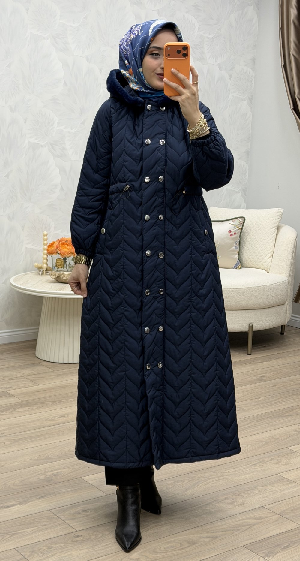 Gözde Kapitone Mont Lacivert