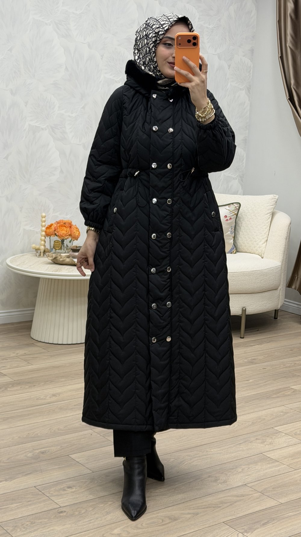 Gözde Kapitone Mont Siyah