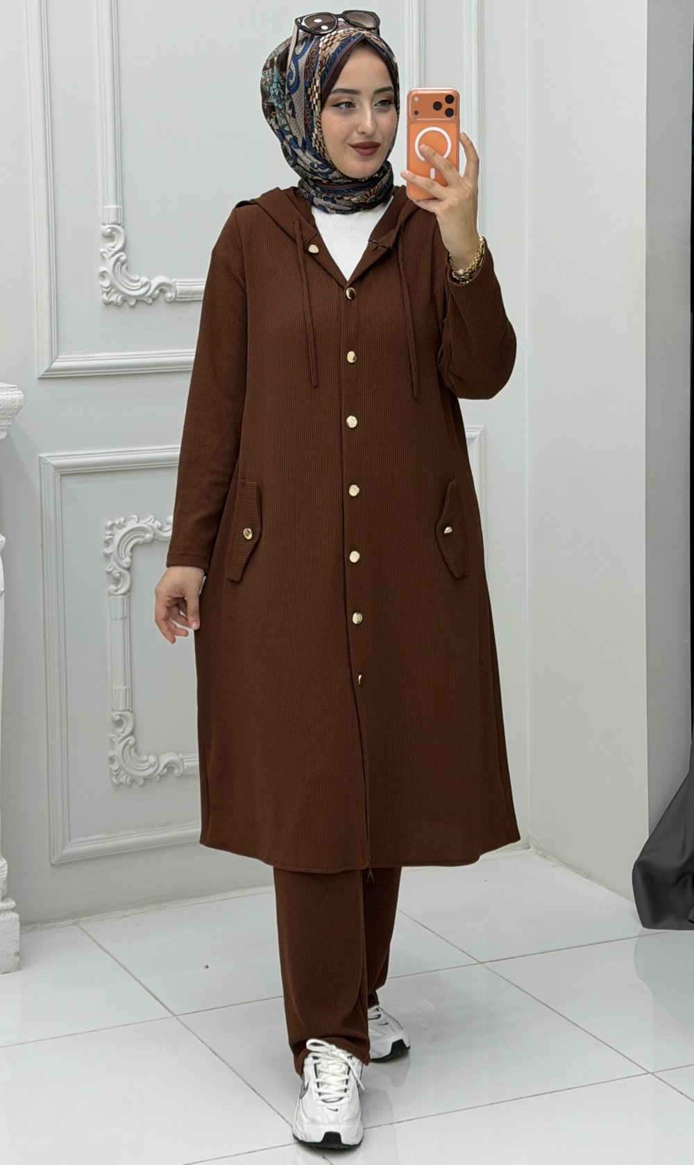 Rahatlık ve şıklığı bir araya getiren Eflin Takım, sade ama zarif duruşuyla günlük kombinlerinizi güçlendiriyor. Yumuşak kumaşı ve esnek yapısı sayesinde gün boyu konfor sunarken, modern kesimiyle stil sahibi bir görünüm yaratır.