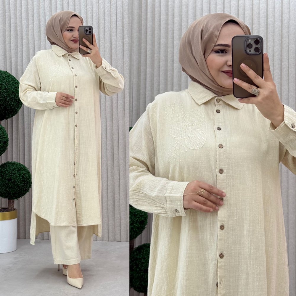 ? 1 beden Göğüs 54 cm Tunik Basen 66 cm Pazu 20 cm Pantolon Bel açık 52 cm