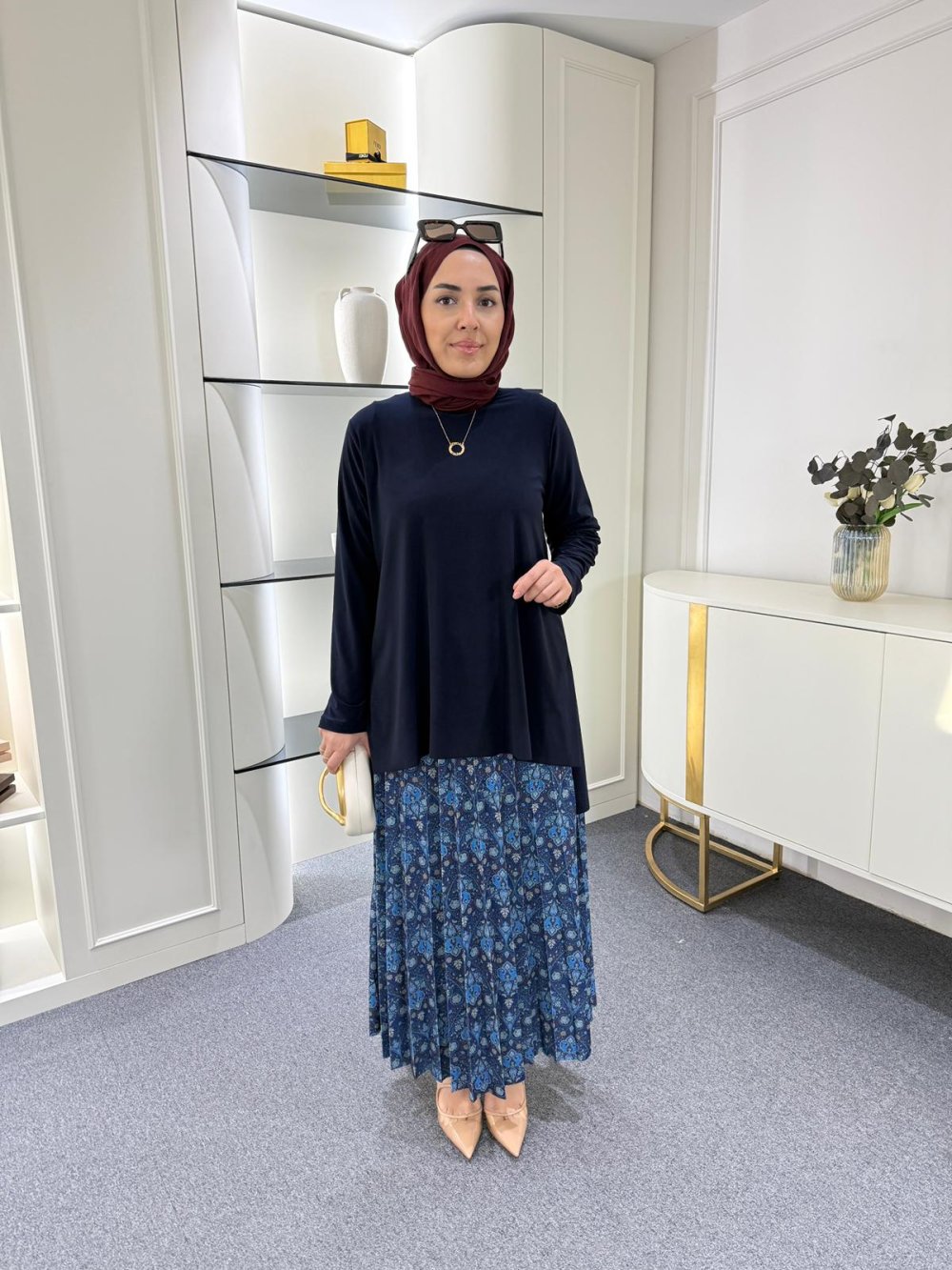 Tunik ön boy 75 cm, arka boy 85 cm’dir.