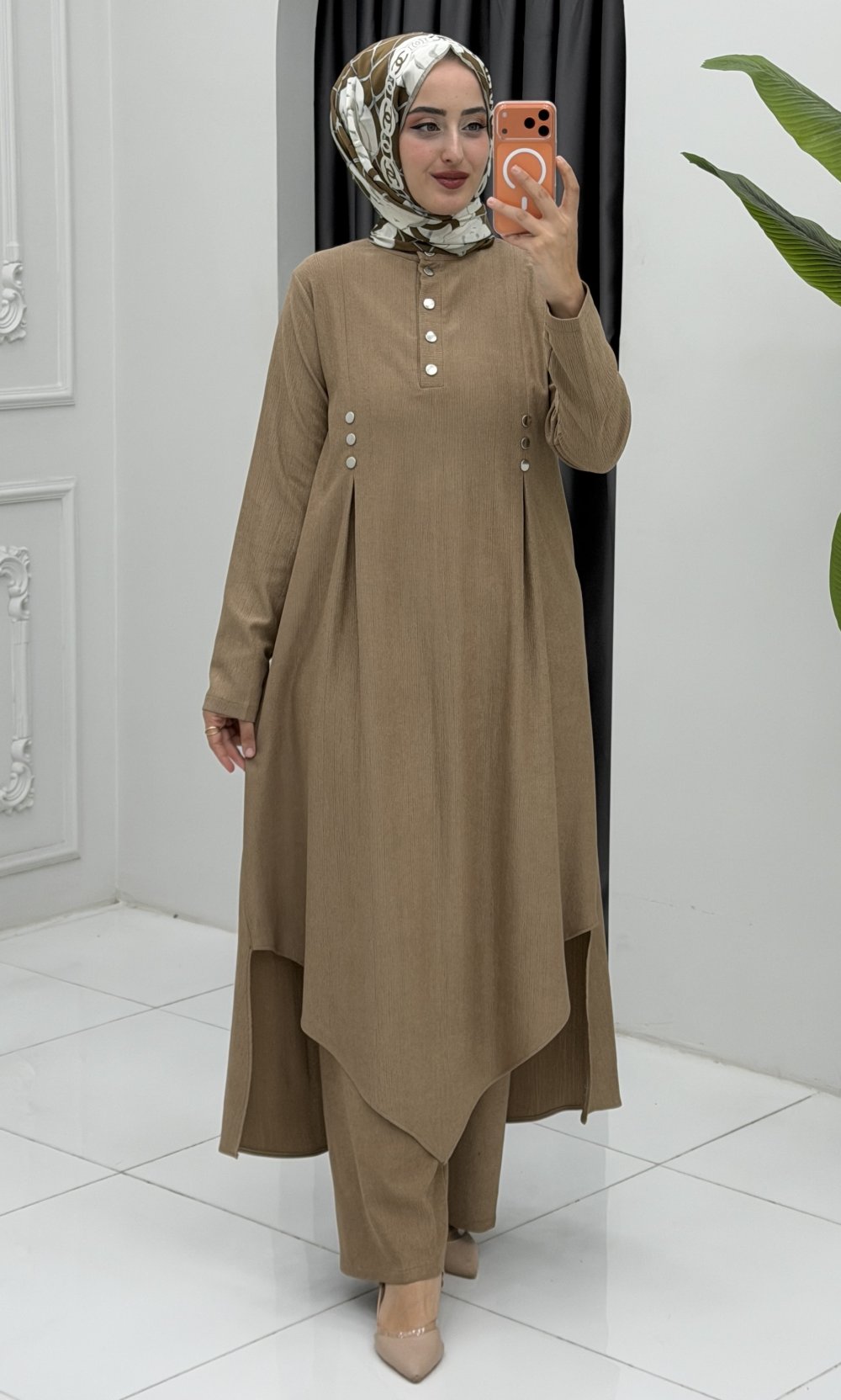 Evin Takım,hem iş hem de günlük hayatınızda rahatlıkla tercih edebileceğiniz çok yönlü bir parçadır. Şıklığı konforla buluşturan bu tasarım, sezonun en gözde modellerinden biri olacak!