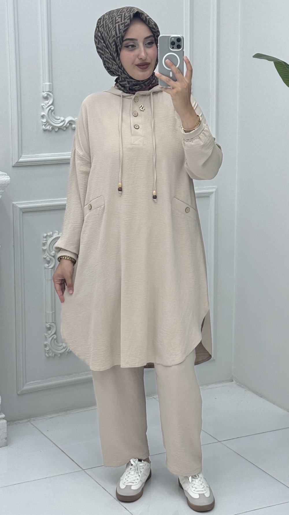 Rahatlık ve şıklığı bir araya getiren İdil Takım, sade ama zarif duruşuyla günlük kombinlerinizi güçlendiriyor. Yumuşak kumaşı ve esnek yapısı sayesinde gün boyu konfor sunarken, modern kesimiyle stil sahibi bir görünüm yaratır.