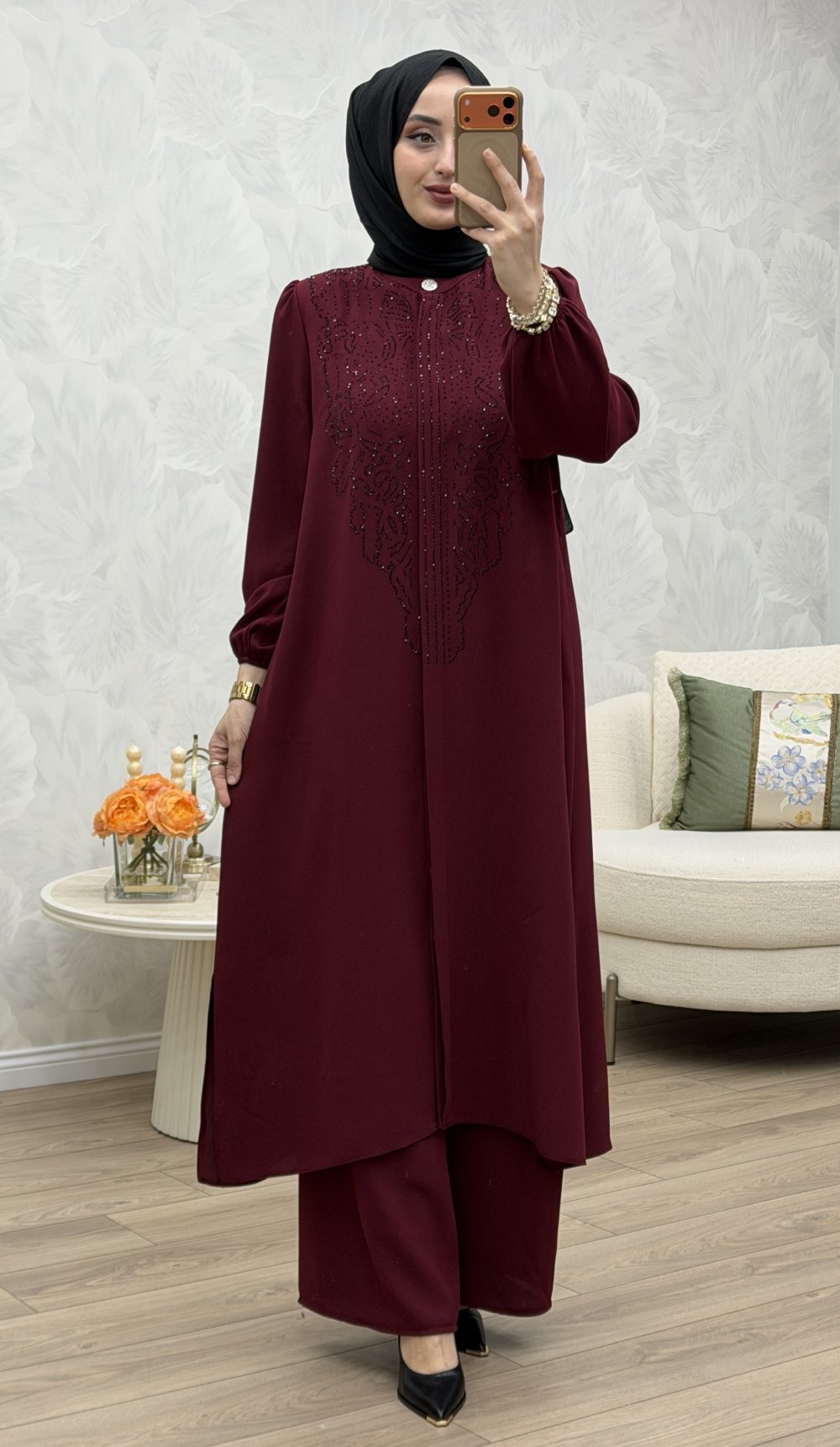 Rahatlık ve şıklığı bir araya getiren İmran Takım,sade ama zarif duruşuyla günlük kombinlerinizi güçlendiriyor. Yumuşak kumaşı ve esnek yapısı sayesinde gün boyu konfor sunarken, modern kesimiyle stil sahibi bir görünüm yaratır.