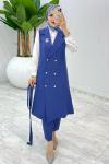 İndigo Broşlu Ala Yelek Takım Tesettür Giyim