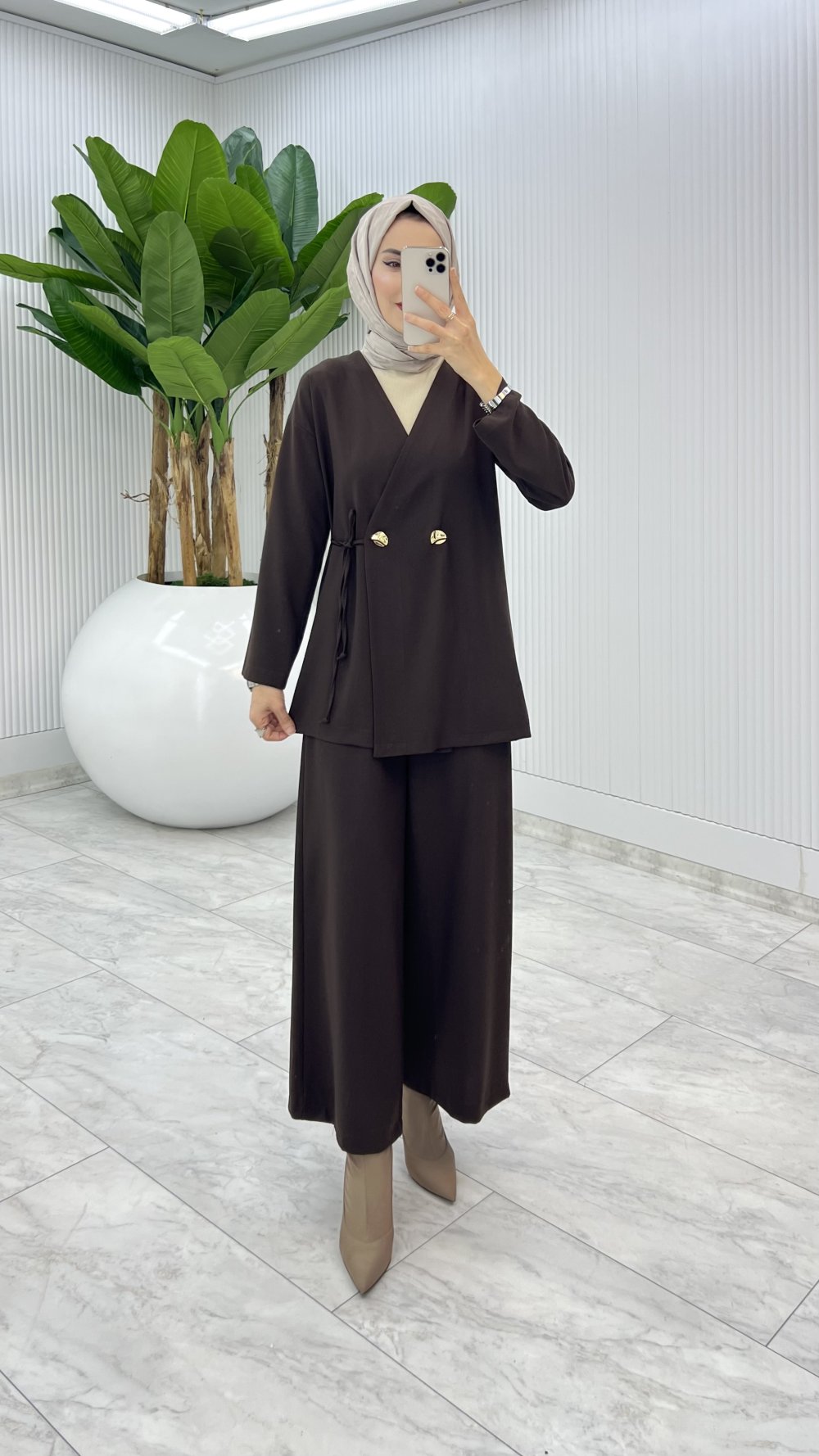 Kahve Güler Pantolonlu Takım Tesettür Giyim