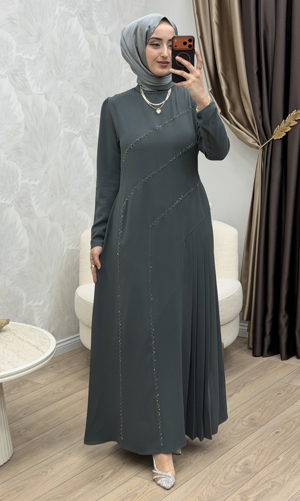 Rahatlık ve şıklığı bir araya getiren Kristal Abiye sade ama zarif duruşuyla günlük kombinlerinizi güçlendiriyor. Yumuşak kumaşı ve esnek yapısı sayesinde gün boyu konfor sunarken, modern kesimiyle stil sahibi bir görünüm yaratır. Her ortamda şıklığı yakalamanızı sağlar.