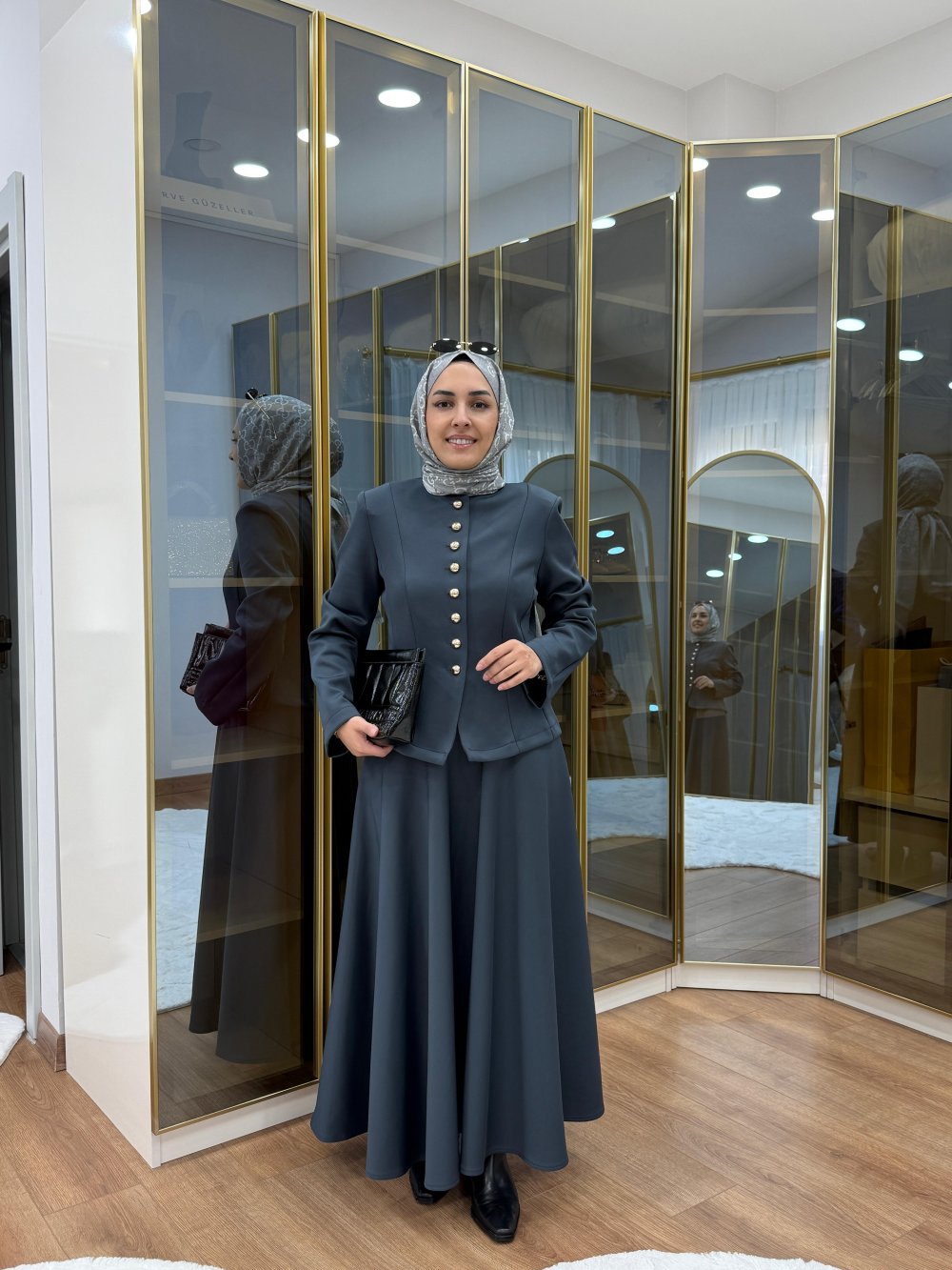 Kulp Detaylı Ceket Etekli Takım Antrasit