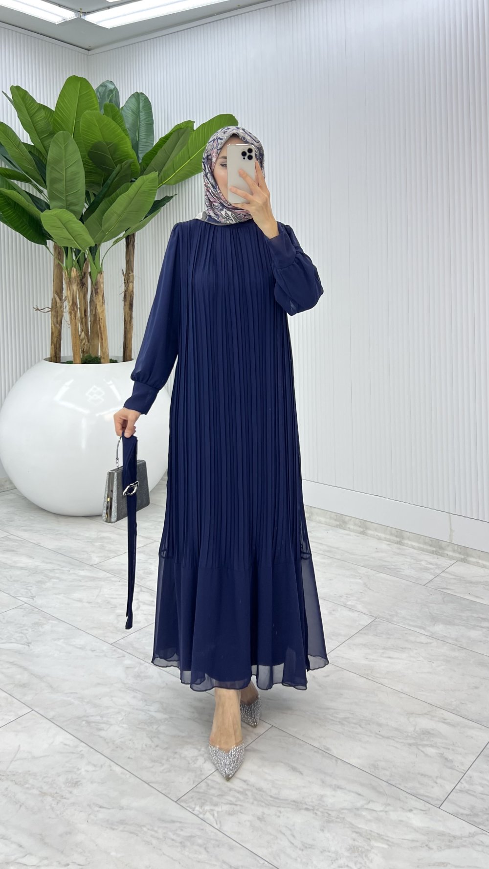 Lacivert Uçuş Uçuş Elbise Tesettür Giyim