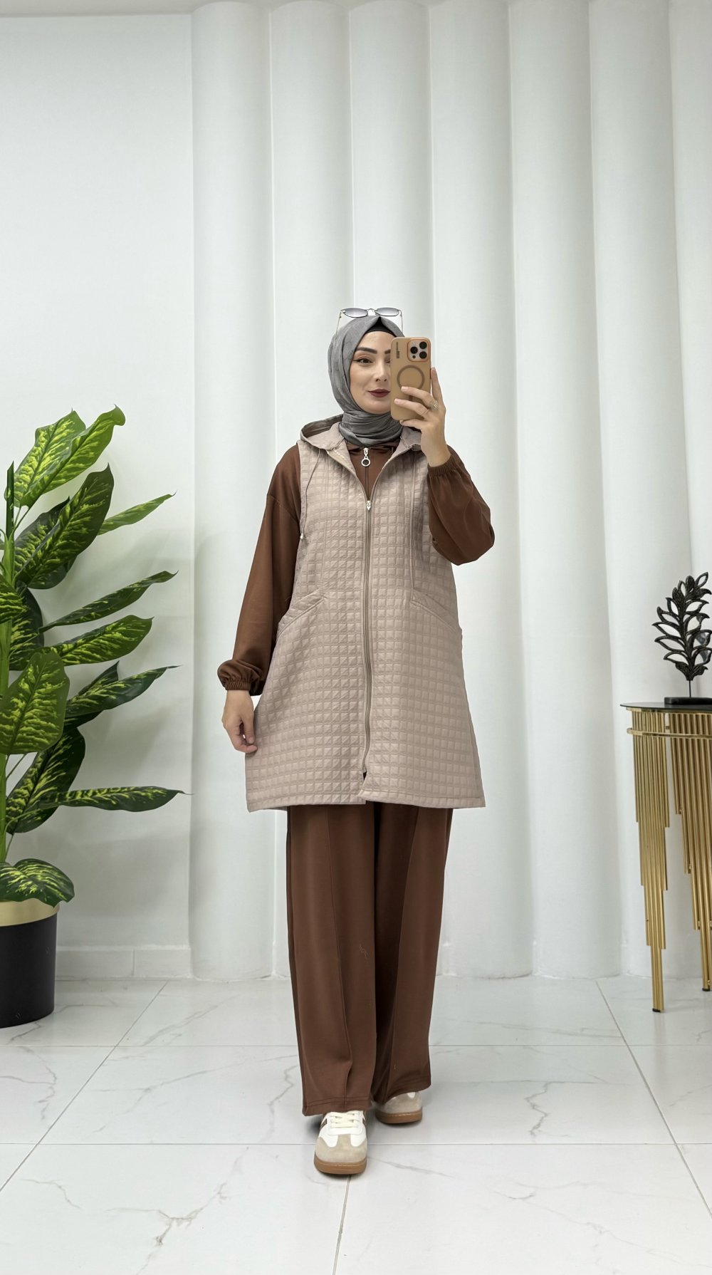 Lizya kapitone yelek Vizon