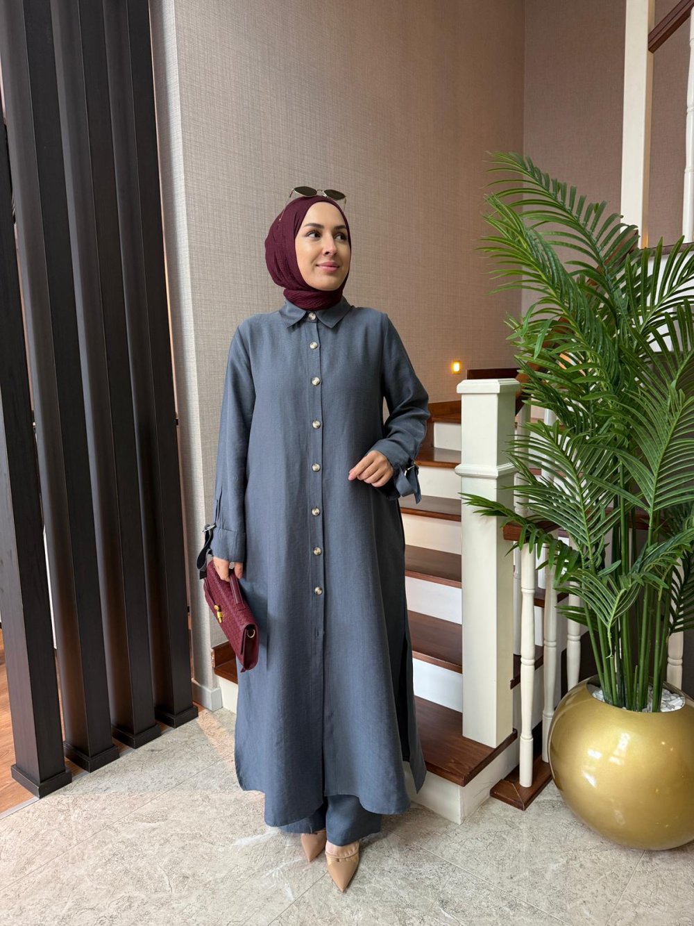 Tunik boy 125 cm’dir. Yanlarda cepleri mevcuttur. Kolları D toka apolet detaylıdır.