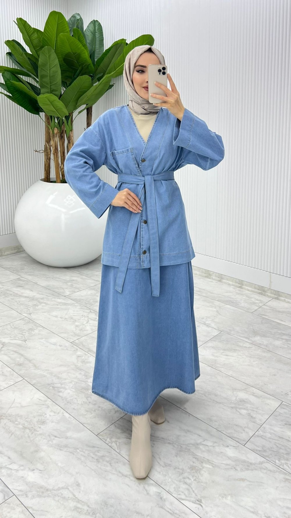 Mavi Zennub Premıum Etek Takım Tesettür Giyim
