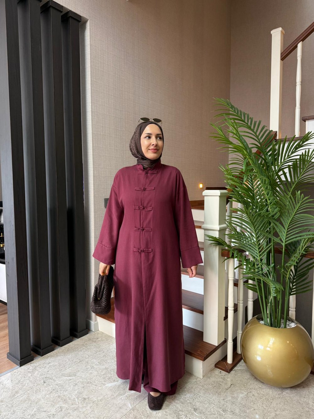 Kap boy 135 cm’dir. Önü el işi düğme detaylıdır.