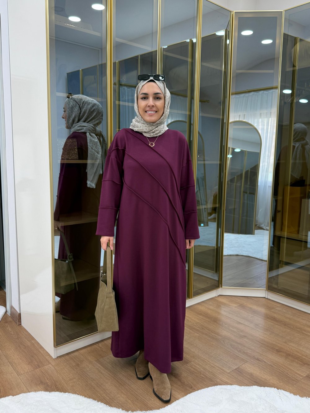 Nervür Detaylı Oysho Elbise Mürdüm