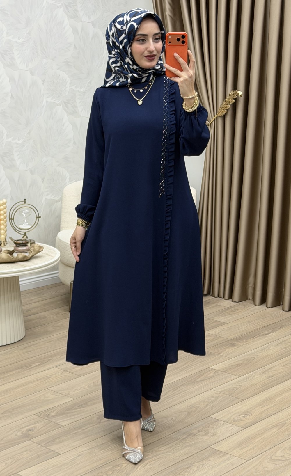 Nevin Takım,hem iş hem de günlük hayatınızda rahatlıkla tercih edebileceğiniz çok yönlü bir parçadır. Şıklığı konforla buluşturan bu tasarım, sezonun en gözde modellerinden biri olacak