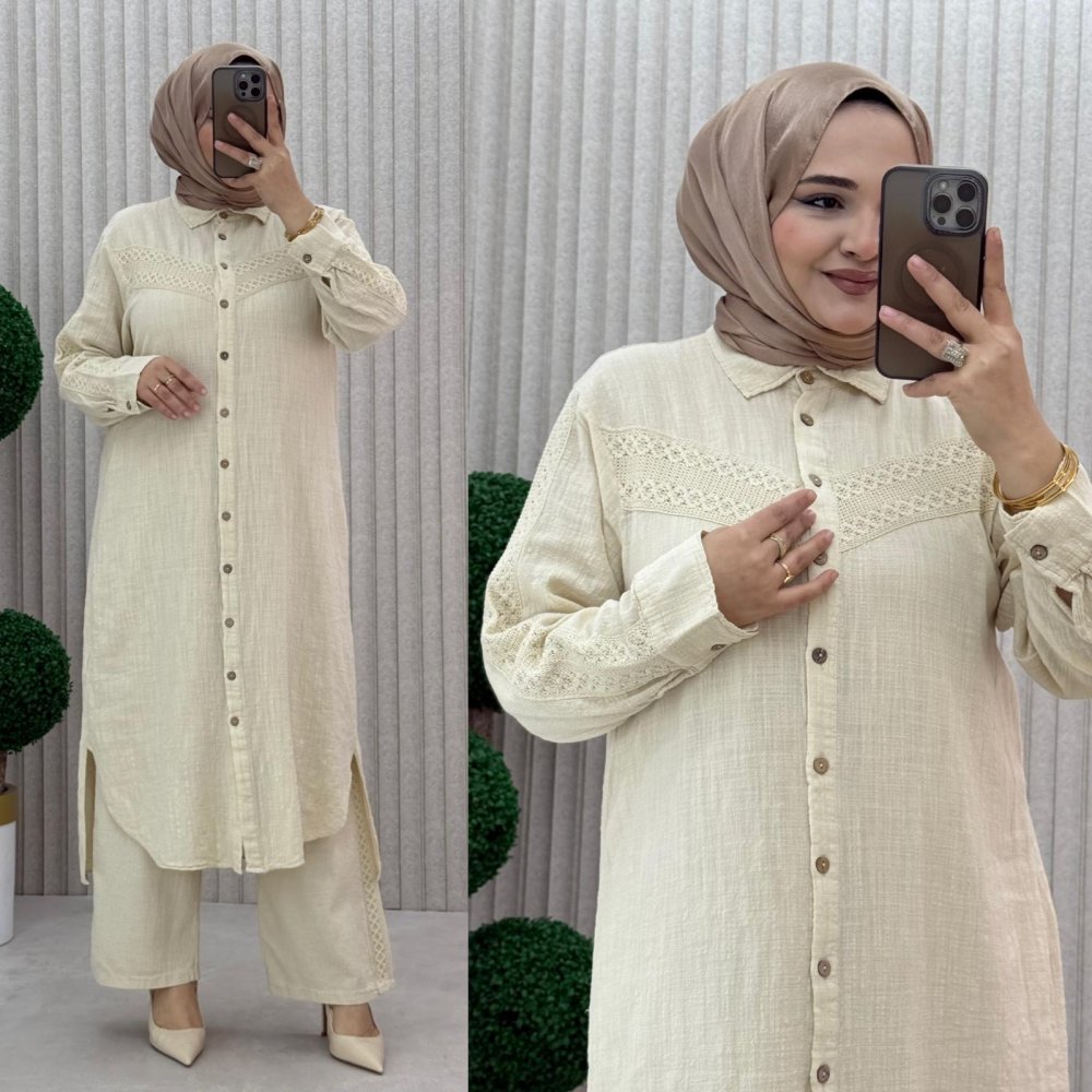 ?2 beden Göğüs 56 cm Tunik Basen 64 cm Pazu 22 cm Pantolon Bel açık 54 cm