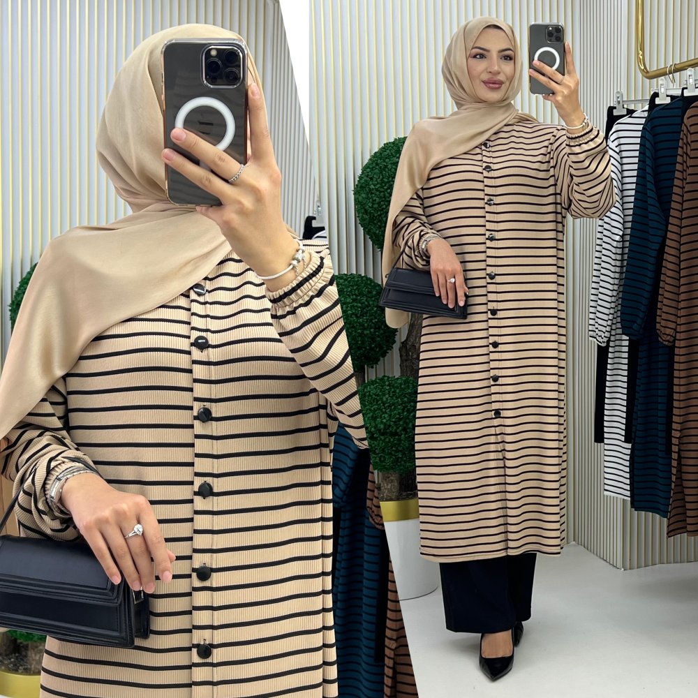 Örme kumaş boydan düğmeli kollar lastikli