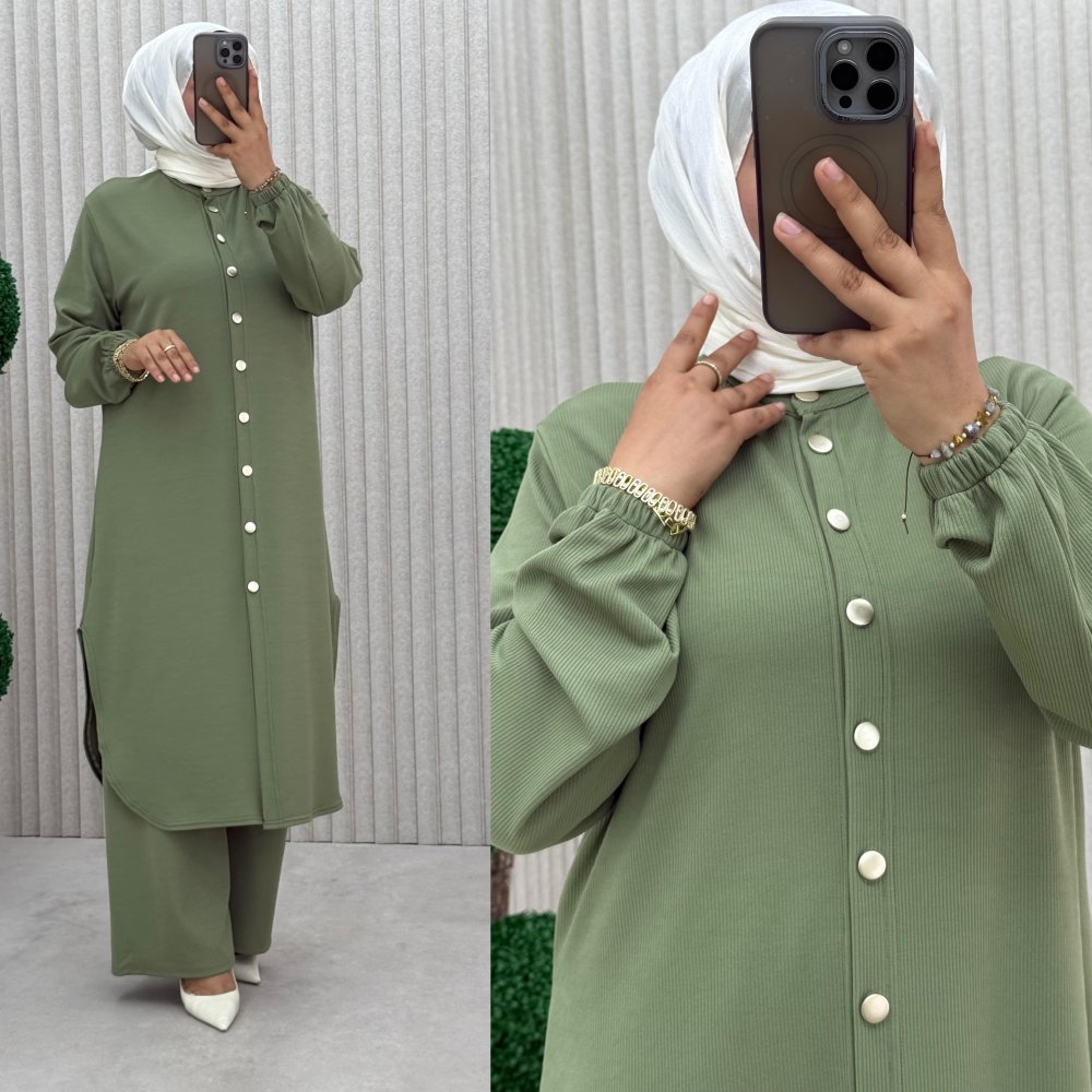 Örme kumaş boydan düğmeli kollar lastikli