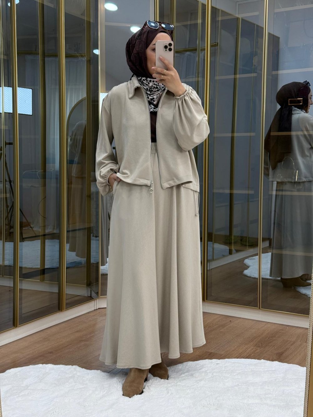 •  omuzu büzgülü ceket etek takım   •
