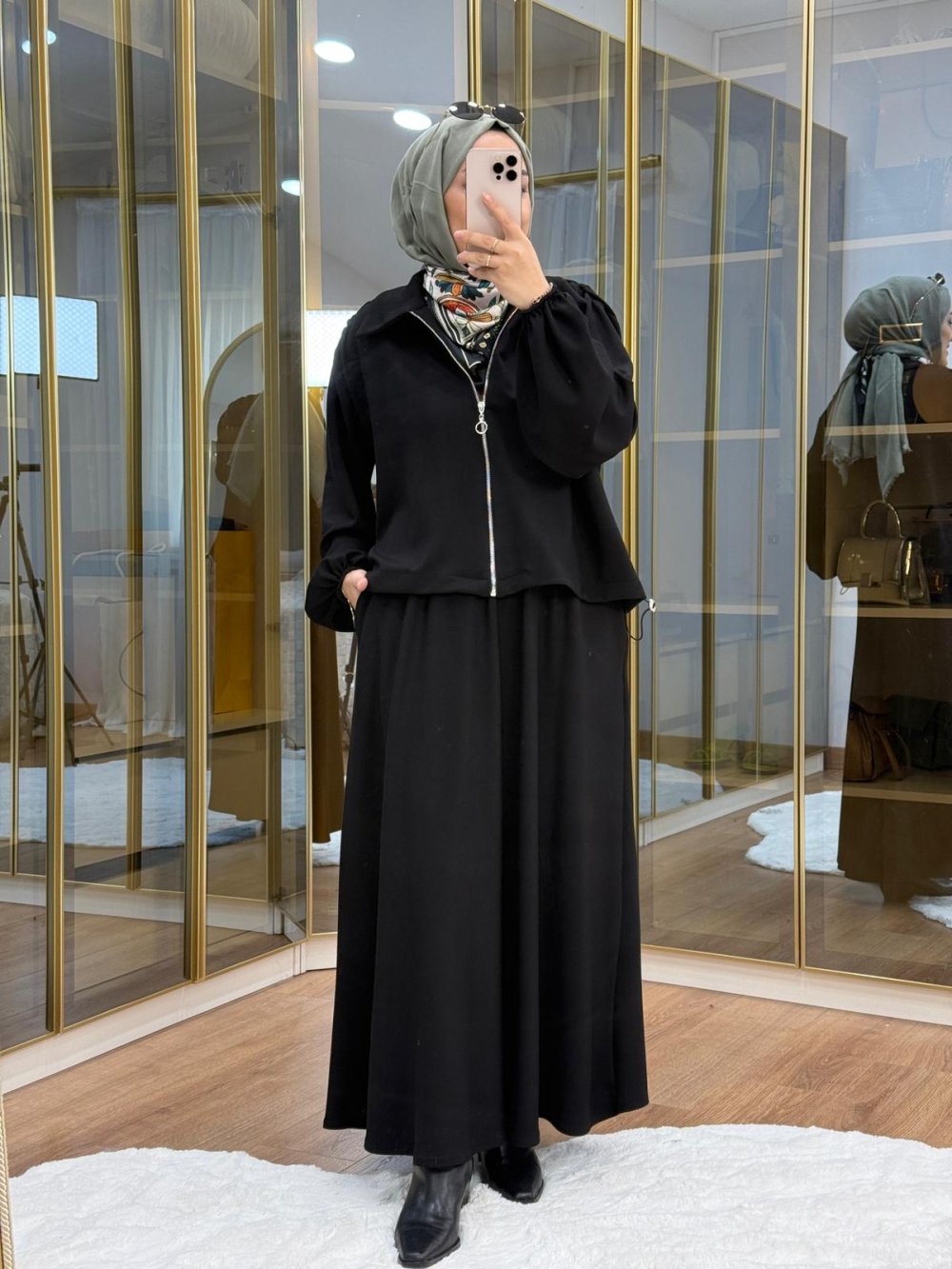 •  omuzu büzgülü ceket etek takım   •