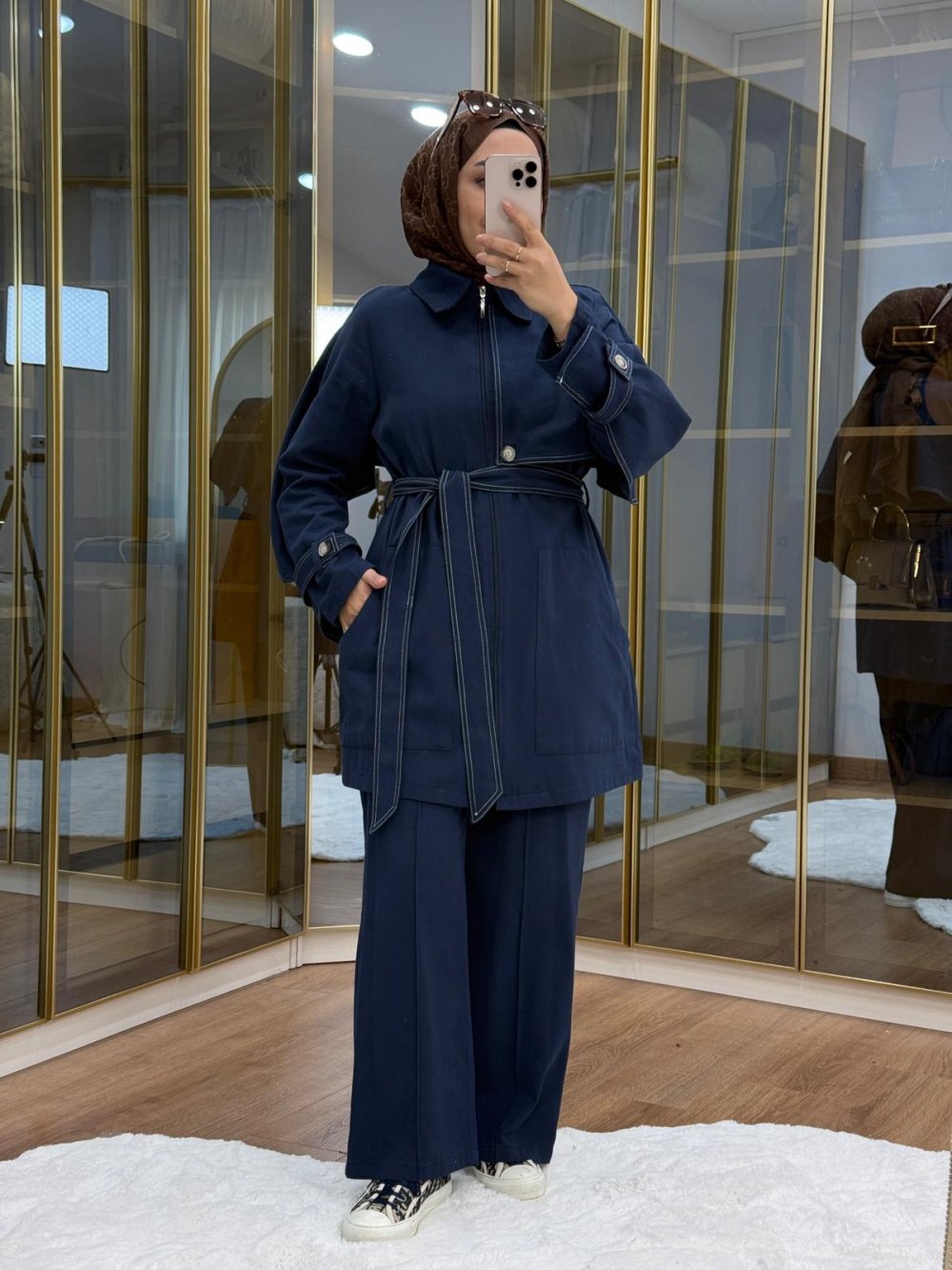 •  pelerinli gabardin takım   •