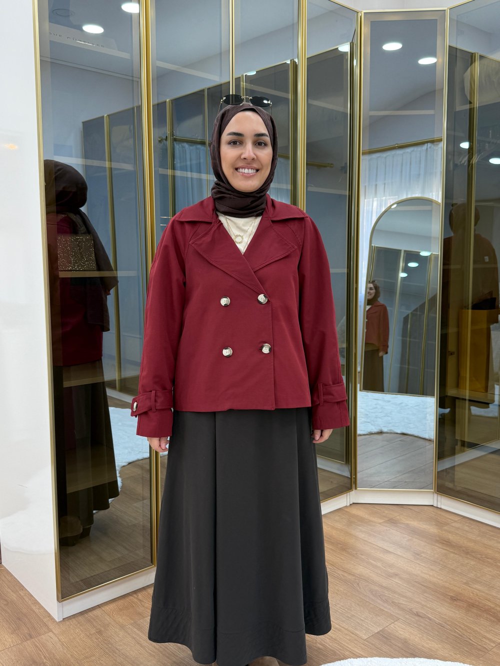 Reglan kol Kısa Trençkot Bordo