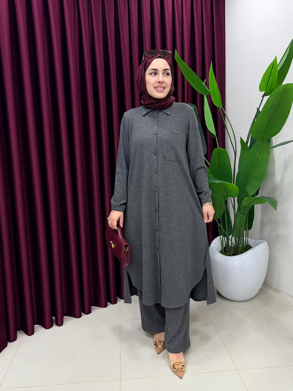 Tunik ön boy 115 cm, arka boy 120 cm’dir.