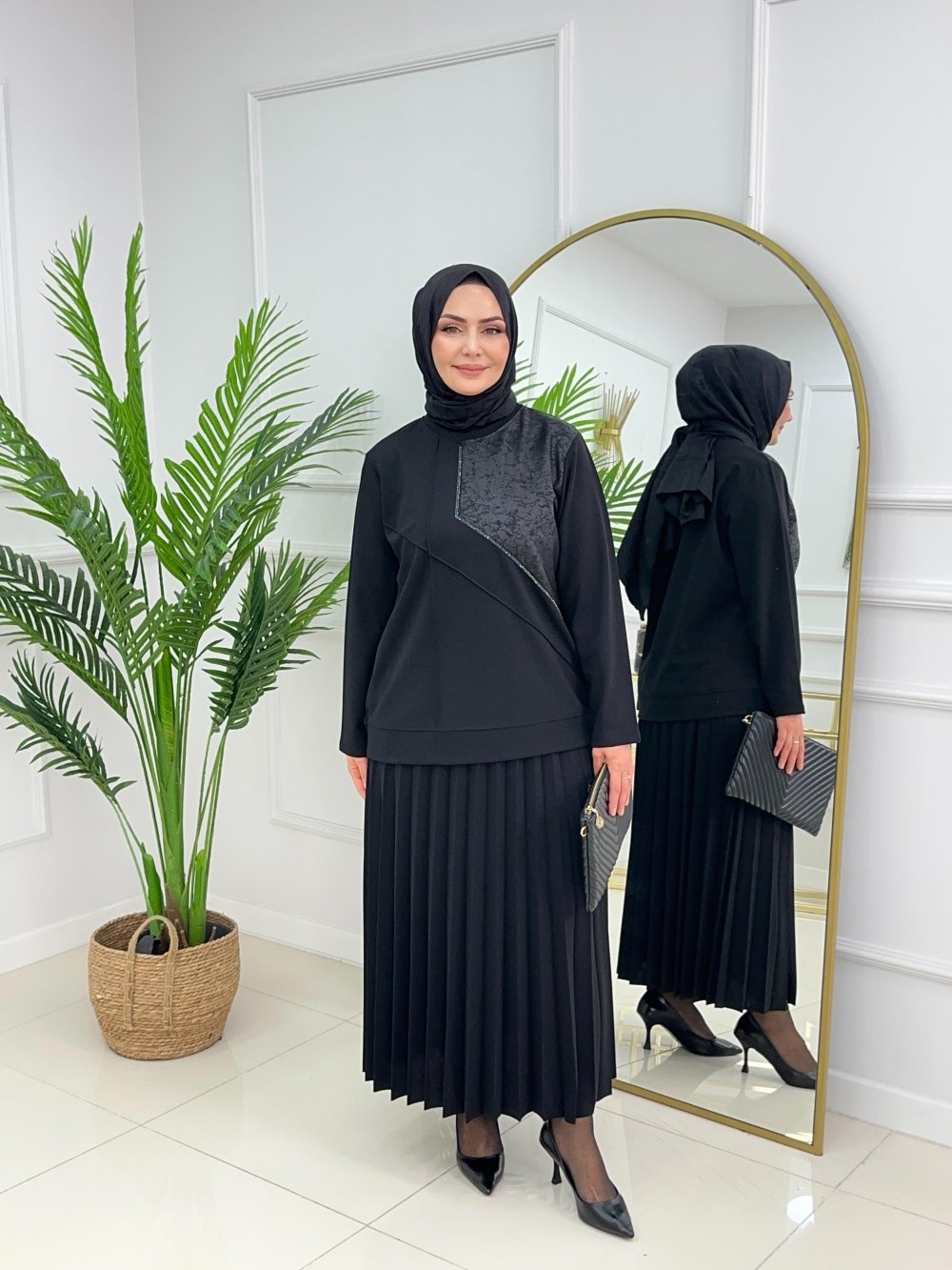 TUĞÇE ETEKLİ TAKIM - SİYAH