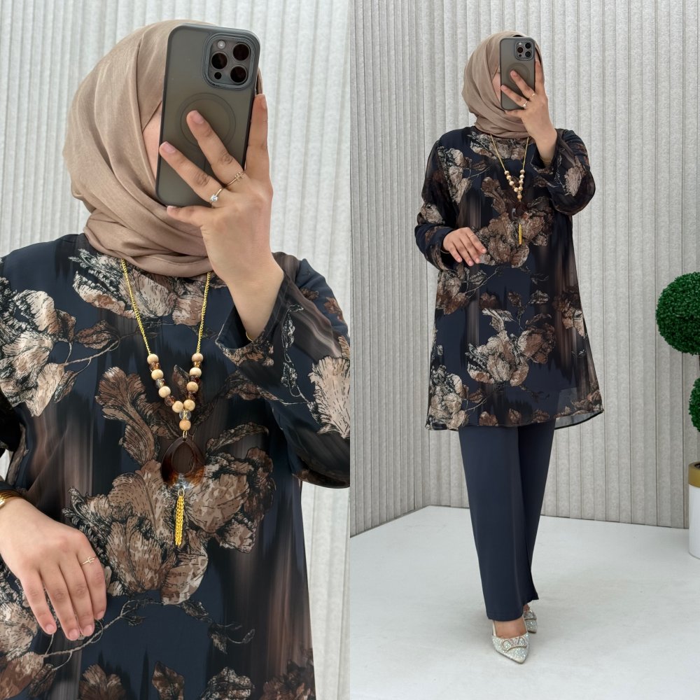 Tunik dijital baskılı şifon içi sandy kumaş