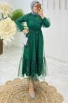 Zümrüt Astarlı Tasarım Elbise Tesettür Giyim